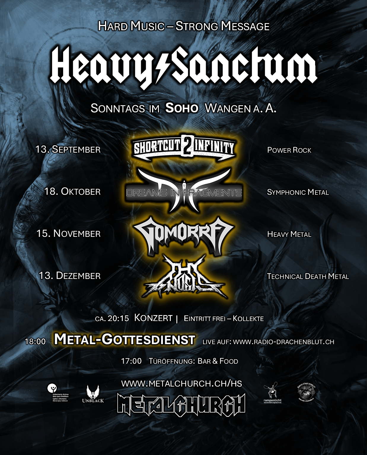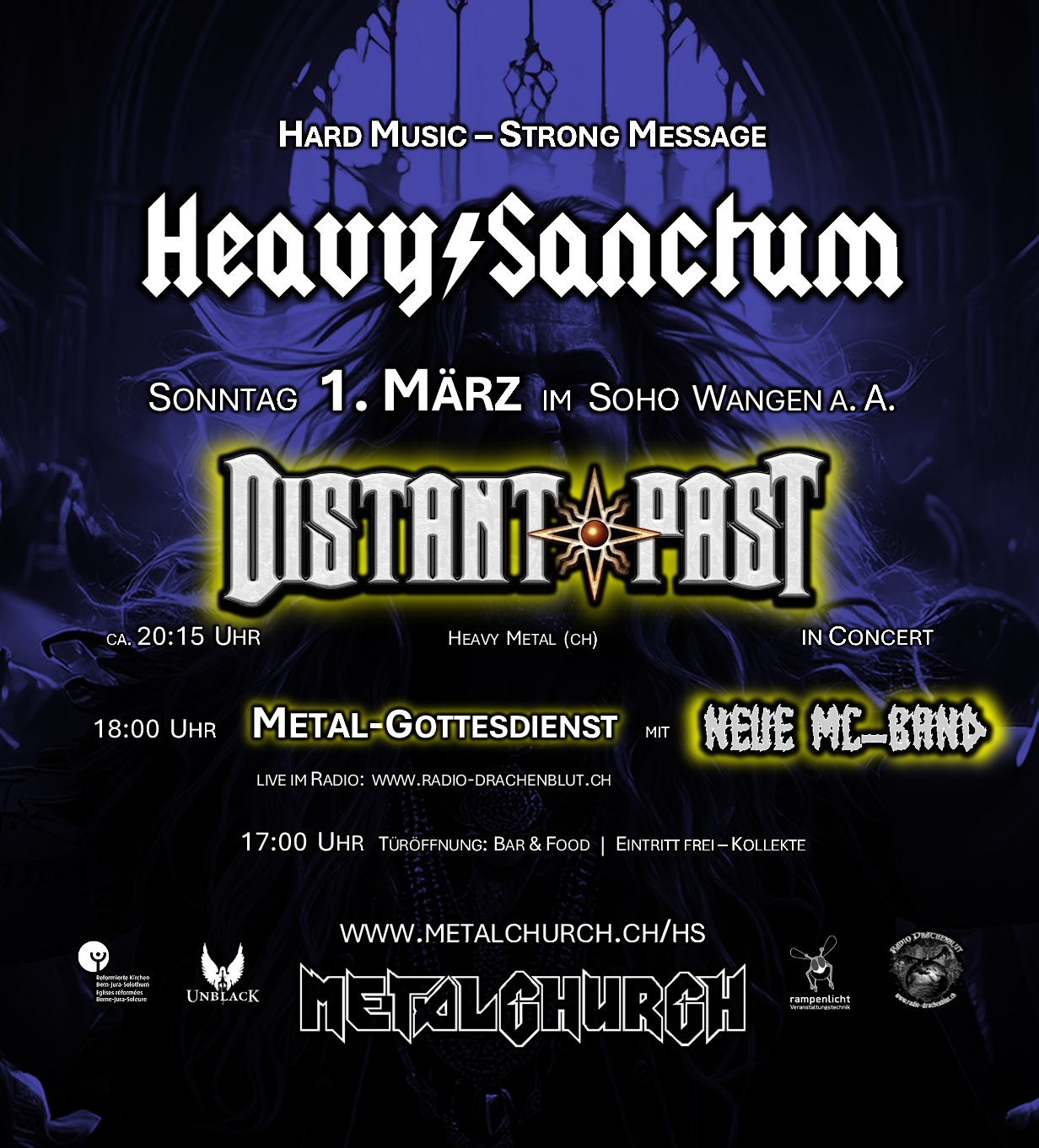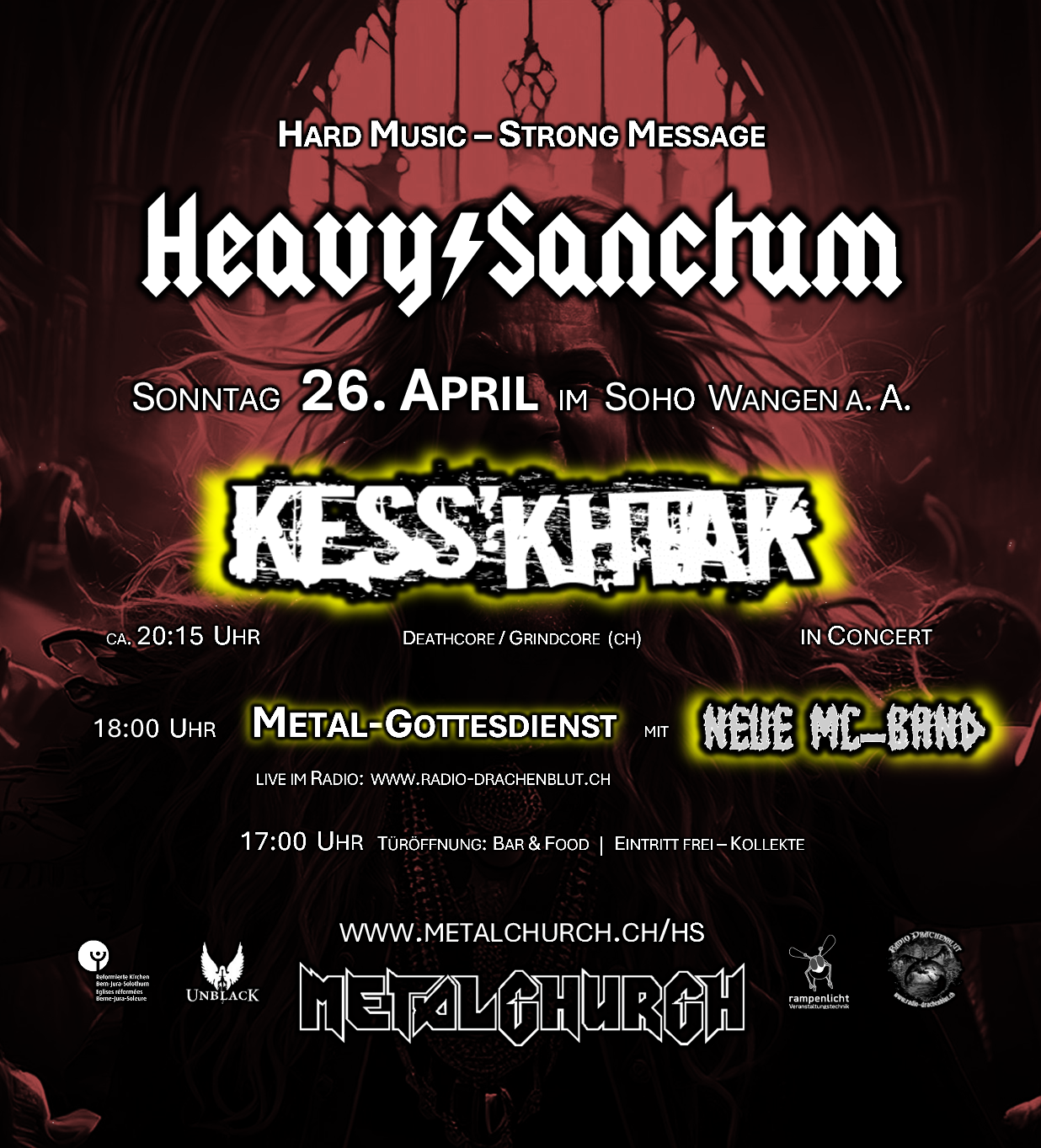18:00h Metalgottesdienst mit einer unserer Metalchurch-Bands, Samuel Metalpfarrer Hug und weiteren Mitwirkenden